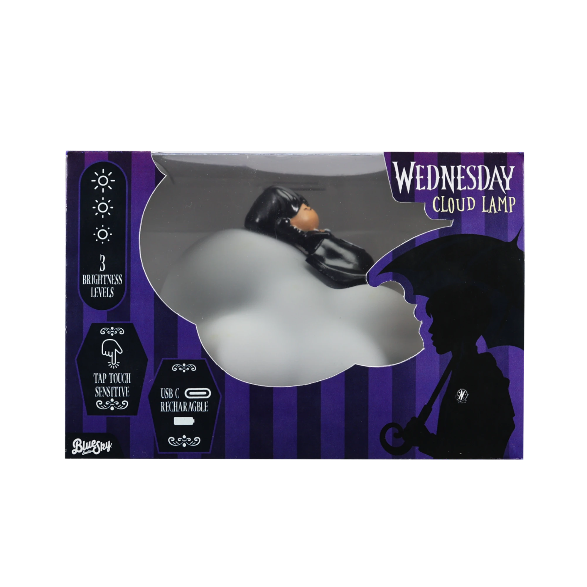 Questa lampada originale a forma di nuvola con il motivo di Mercoledì è un’aggiunta perfetta per qualsiasi stanza. La luce delicata regala un’illuminazione piacevole per il relax serale, mentre il design conquista i fan del personaggio amatissimo. Grazie all’alimentazione USB, l’uso resta semplice e pratico.