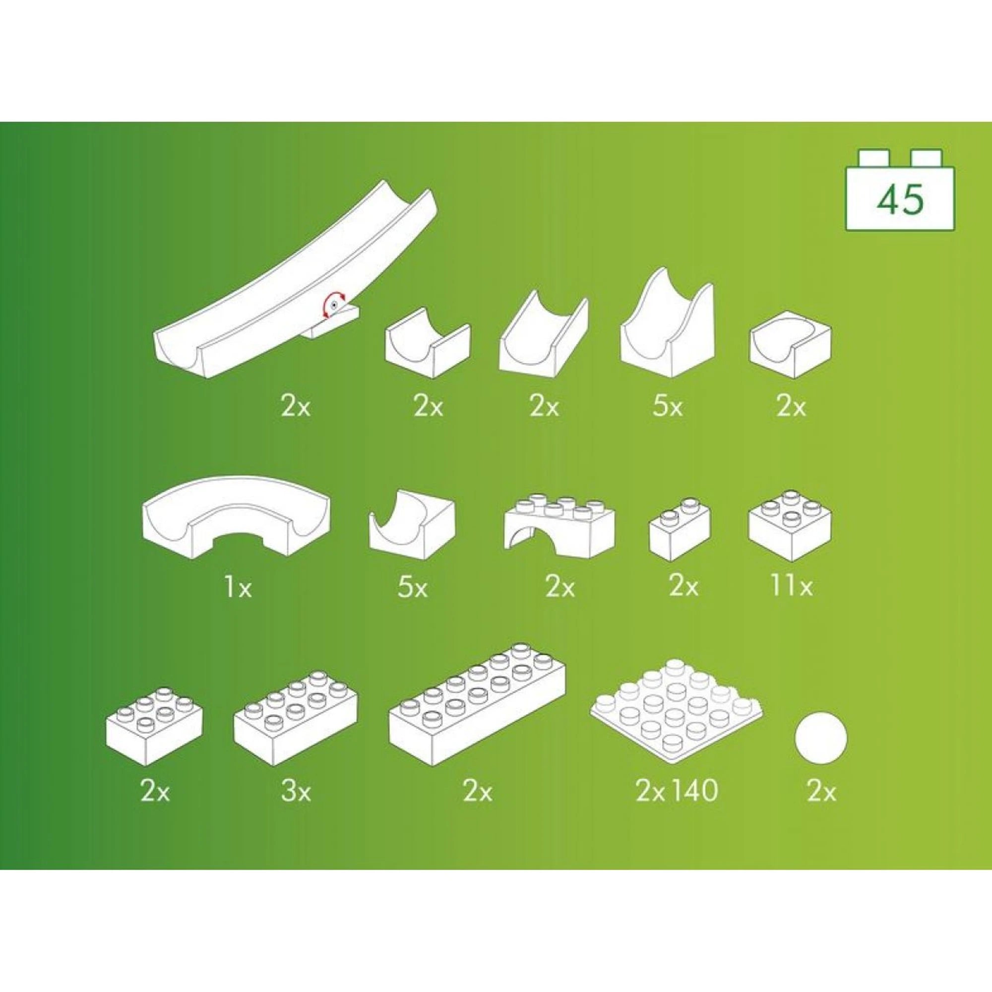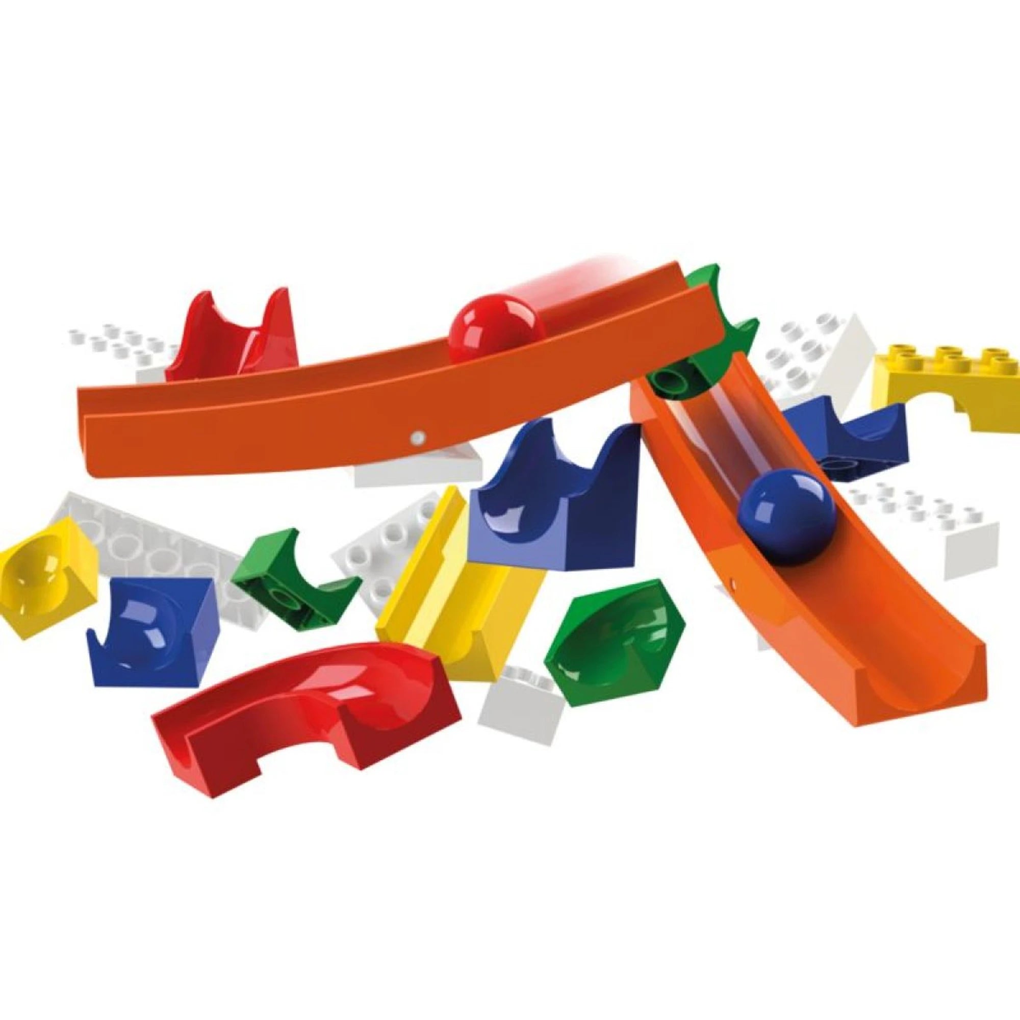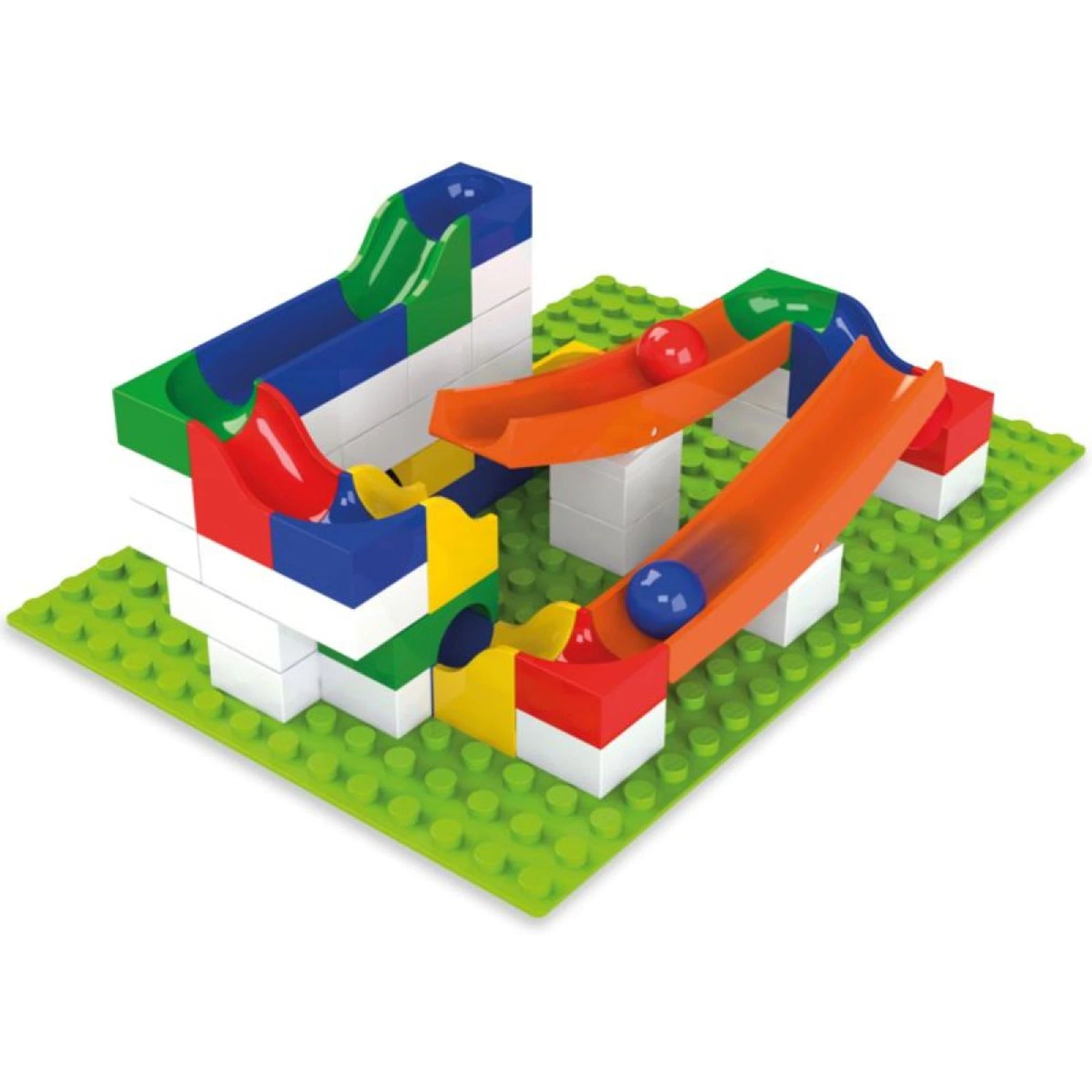 La pista per biglie può essere arricchita con 45 pezzi di colorati mattoncini. Si possono assemblare seguendo le istruzioni. Le... Leggi di più
