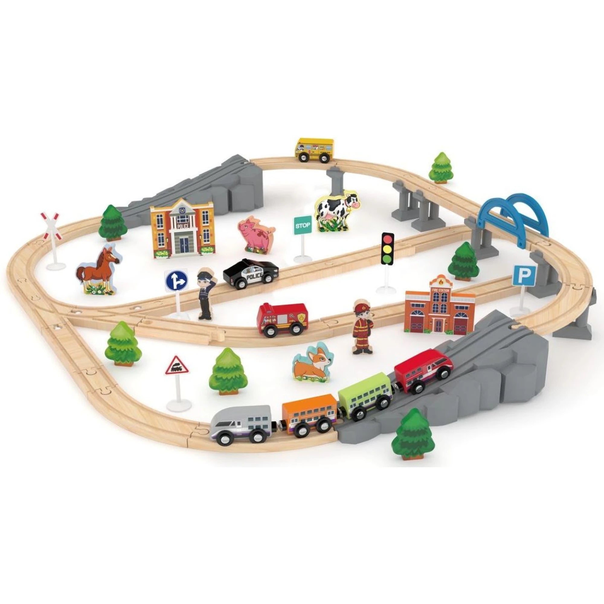 J'ADORE Pista ferroviaria in legno con ponte e accessori